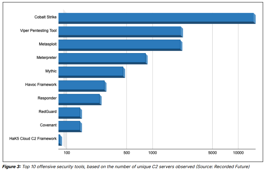 C&C frameworks: Open-source tools like Cobalt Strike, Meterpreter, and Viper have been the most popular command-and-control (C&C) frameworks with malware authors in 2023. The three were by far the most popular frameworks among malware authors, followed at a large distance by tools like Sliver, Havoc, and Brute Ratel. The biggest change is Viper, which is now just as popular as Meterpreter, according to data collected by Recorded Future.
