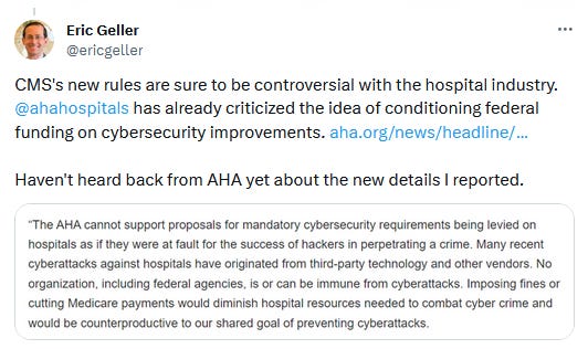 US cybersecurity requirements for hospitals: The White House will unveil new cybersecurity requirements for US hospitals in the upcoming months. The new rules will require hospitals to establish basic cybersecurity defenses in order to receive federal funding. The US government is pushing the new requirements in the aftermath of a wave of incidents that has crippled hundreds of hospitals across the US over the past year. The US hospital industry previously vowed to fight any new rulemaking. [Additional coverage in The Messenger]
