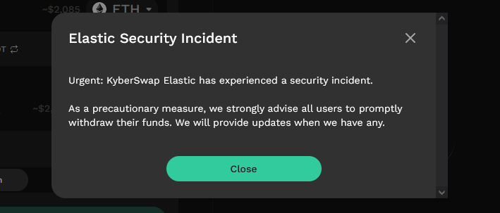 KyberSwap crypto-heist: A hacker has breached the network of cryptocurrency trading platform KyberSwap and stole $46 million worth of assets. The company confirmed the hack and urged users to withdraw funds from their platform. KyberSwap has offered the hacker the possibility of keeping 10% of the stolen funds as a "bug bounty reward," but five days later, the funds have yet to be returned. This is the company's second hack after it lost $265,000 in September 2022. [Additional coverage in CoinTelegraph]