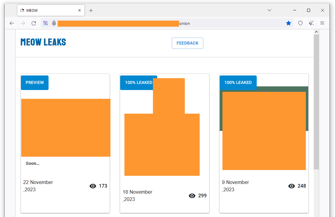 MEOW: Sticking with the cat-themed extortion groups, we also have MEOW Leaks, a group that's been operating since September this year. It's unclear if they engage in ransomware attacks or classic data extortion. Their latest victim is the Vanderbilt University Medical Center.