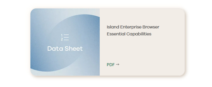 Island is an enterprise browser that embeds access policies, data protection, and security controls to create a safe environment that works on unmanaged as well as managed endpoints. Take a look at Island's essential features below [PDF].