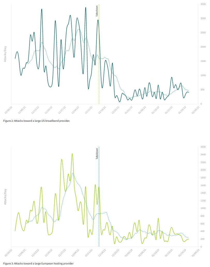 - Takedowns work: security firm Netscout's analysis indicates that DDoS activity fell significantly after an international takedown targeting DDoS-for-hire services took place in mid-December last year.