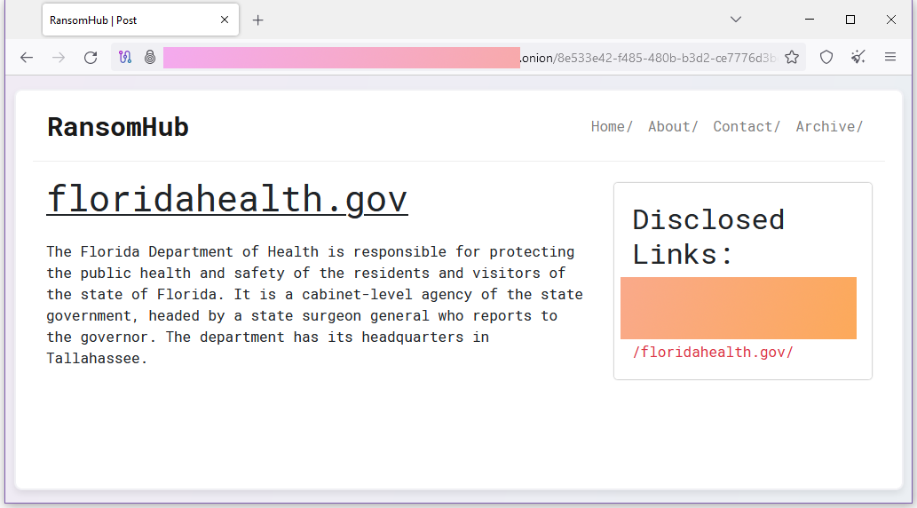 Florida DoH ransomware attack: The Florida Department of Health has confirmed that hackers breached its systems in an incident last week. The attack hit the Department's statistics system, which is used to issue birth and death certificates. Following the attack, the Department is now physically driving new birth and death certificates to state hospitals for processing. A group named RansomHub claimed credit for the attack and leaked some data after the Department refused to pay a ransom. [Additional coverage in the Tampa Bay Times and DataBreaches.net]