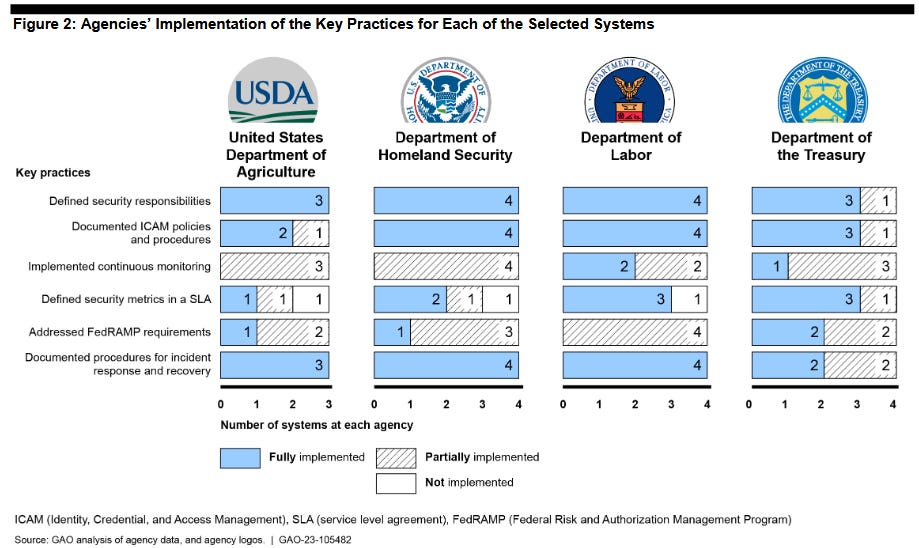 GAO cloud security report: A report by the US Government Accountability Office has found that the departments of Agriculture, Homeland Security, Labor, and Treasury are lagging in implementing crucial cloud security practices. GAO says it randomly selected the four agencies to see how federal agencies have been securing their cloud infrastructure across six key cloud security practices. GAO made 35 recommendations to the four agencies.