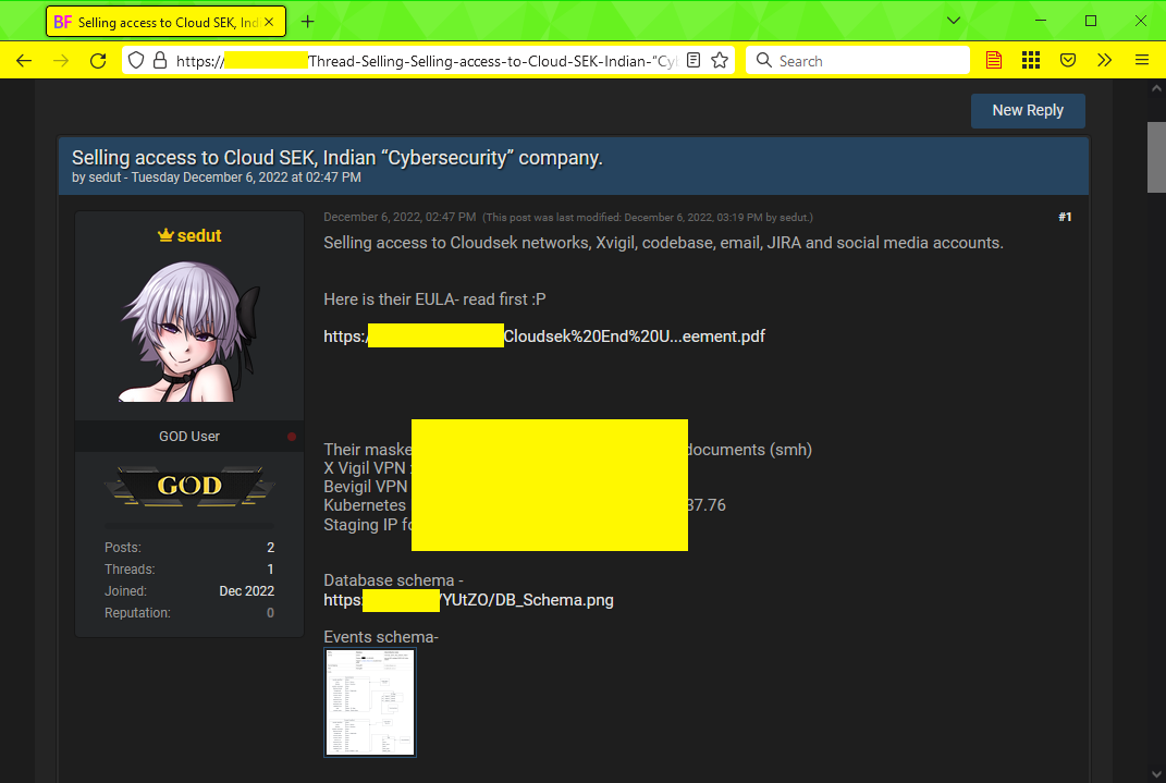 CloudSEK discloses security breach: Indian cybersecurity firm CloudSEK says that a threat actor has gained access to the JIRA account of one of its employees. The account was allegedly used to access CloudSEK internal systems that were storing information on bug reports, customer details, and dark web monitoring. CloudSEK said it learned of the breach after some of its data was put up for sale on Breached—an underground cybercrime forum for selling hacked data. While the data was put up for sale under an account named "sedut," CloudSEK believes the intrusion was carried out by a rival cybersecurity company, but did not elaborate further.