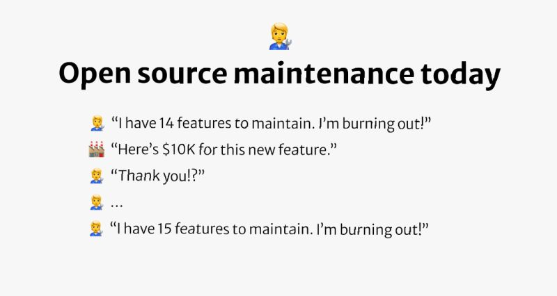 "This funding should NOT be tied to specific feature development, but simply funding the core maintenance of the infrastructure - paying for the maintainers (and/or letting them or their umbrella org hire trusted ones!) to ensure the core project remains healthy and secure. Otherwise, the pressure just rises on the core project to chase feature development at the expense of maintenance (making maintenance harder) - or, worse, to be pushed away from open source into building proprietary solutions or crippling the open source by moving valuable features into side proprietary products."