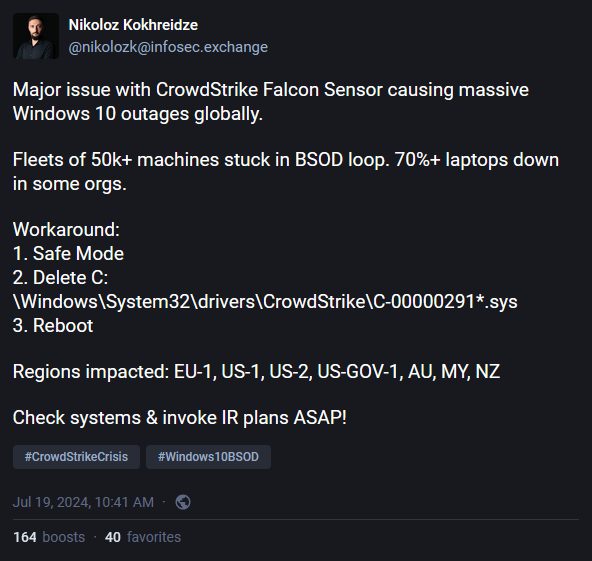 Risky Biz News: CrowdStrike faulty update affects 8.5 million Windows systems