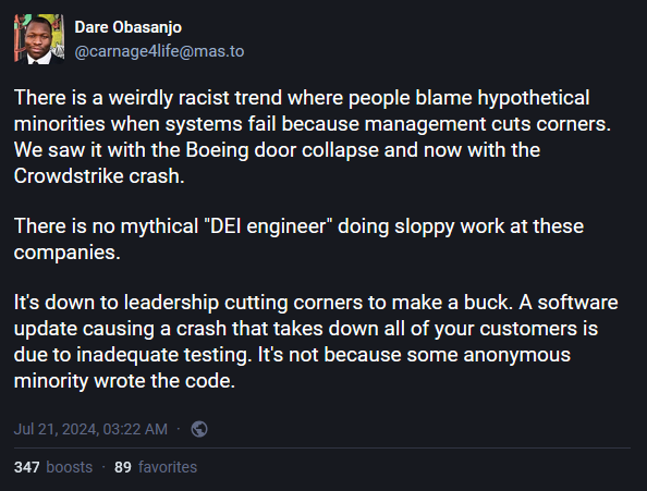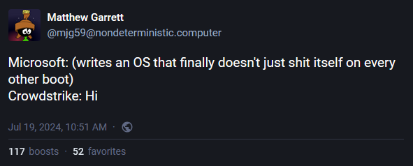 The recovery steps aren't a walk in the park either. It's not like CrowdStrike or Microsoft could have shipped a new update and fixed things in the span of a few minutes.
