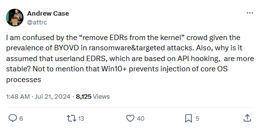 Unfortunately, the internet is also full of idiots willing to share their dumb opinions. In the year of the Lord 2024, we had people argue that it's time to ditch security products since they can cause this type of outage. Yes, that's the solution. [eyeroll]
