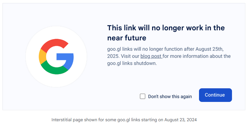 Google to retire goo.gl: Google is retiring its goo.gl URL shortening service. All goo.gl links will start showing an interstitial warning of the EoL on August 23 this year. All Google shortened links will stop working after August 25, 2025.