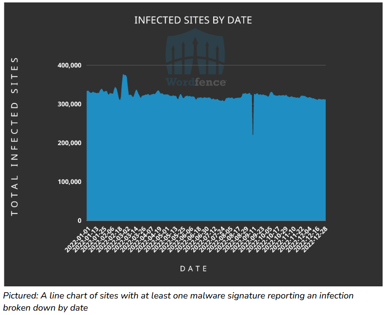 Cred-stuffing on WP sites goes down: Both good and bad news are included in the year-in-review report of Wordfence, a company that provides security services for WordPress sites. The company says that while credential stuffing attacks have remained the top threat for WordPress site operators in 2022, the number of attacks "saw a significant reduction" compared to the previous year. Unfortunately, threat actors appear to have redirected their attention to scanning WordPress sites for configuration files or other threat actors' web shells and then using those to hijack sites instead. As for websites infected with malware, Wordfence says the number remained steady throughout the year, with the company detecting between 310,000 to 330,000 hacked WordPress sites at any given time last year. A total of 1.2 million WordPress sites appear to have been hacked last year, and of these, 210,000 appeared infected at the start and end of the year, meaning there was no one maintaining them.
