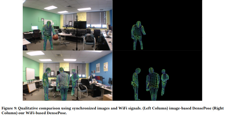 DensePost: A team of researchers from Carnegie Mellon University has designed a system that uses the signals from simple WiFi routers to detect and perceive the 3D shape, pose, and movements of humans inside a room. The system, which they called DensePost, uses a deep neural network to process the phase and amplitude readings from at least three WiFi antennas in order to identify and track human bodies inside a room. Researchers hope their work "paves the way for low-cost, broadly accessible, and privacy-preserving algorithms for human sensing."