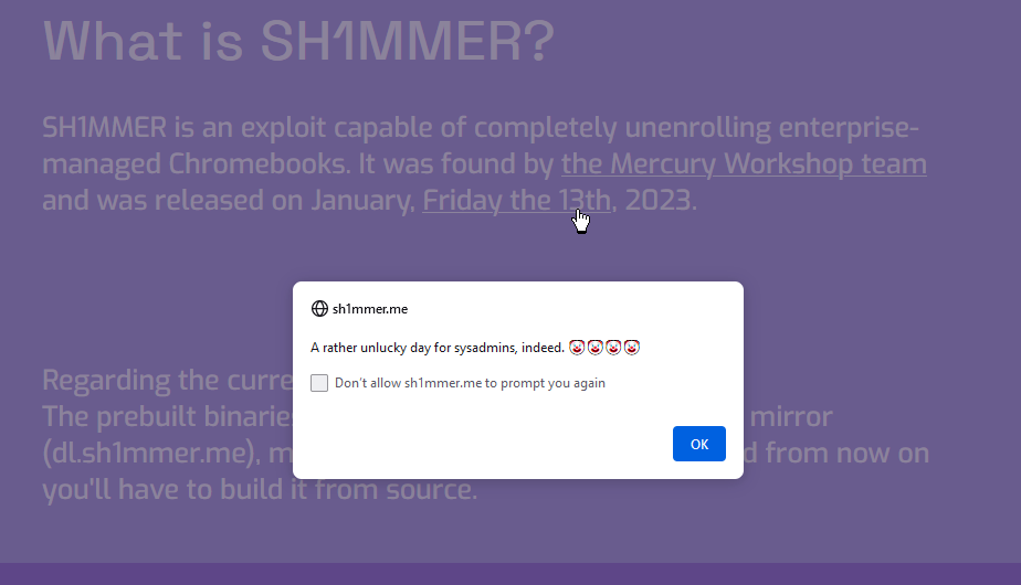Sh1mmer exploit: A Chromebooks hobby group has released Sh1mmer, an exploit that can be used to unenroll Chromebooks from school and enterprise networks.