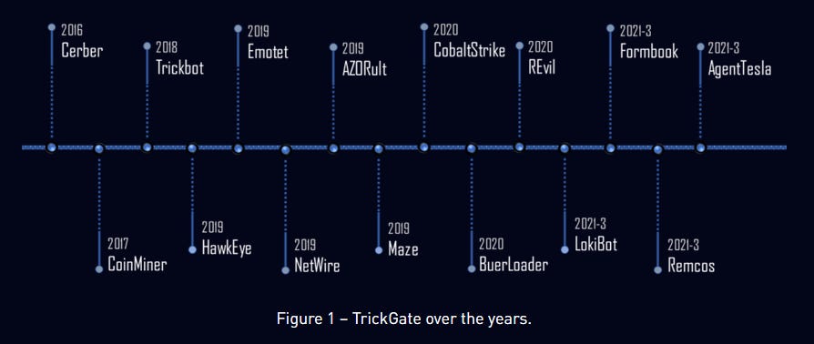 TrickGate: Check Point's research team has lifted the veil from a pretty secretive crypter/packer that has been used by malware gangs since at least 2016. Known as "TrickGate," "Emotet's packer," "new loader," "Loncom," and "NSIS-based crypter," the packer has been used by some of today's largest malware operations, such as Emotet, Trickbot, Maze, REvil, Cerber, AZORult, Formbook, AgentTesla, and more. More in the report.