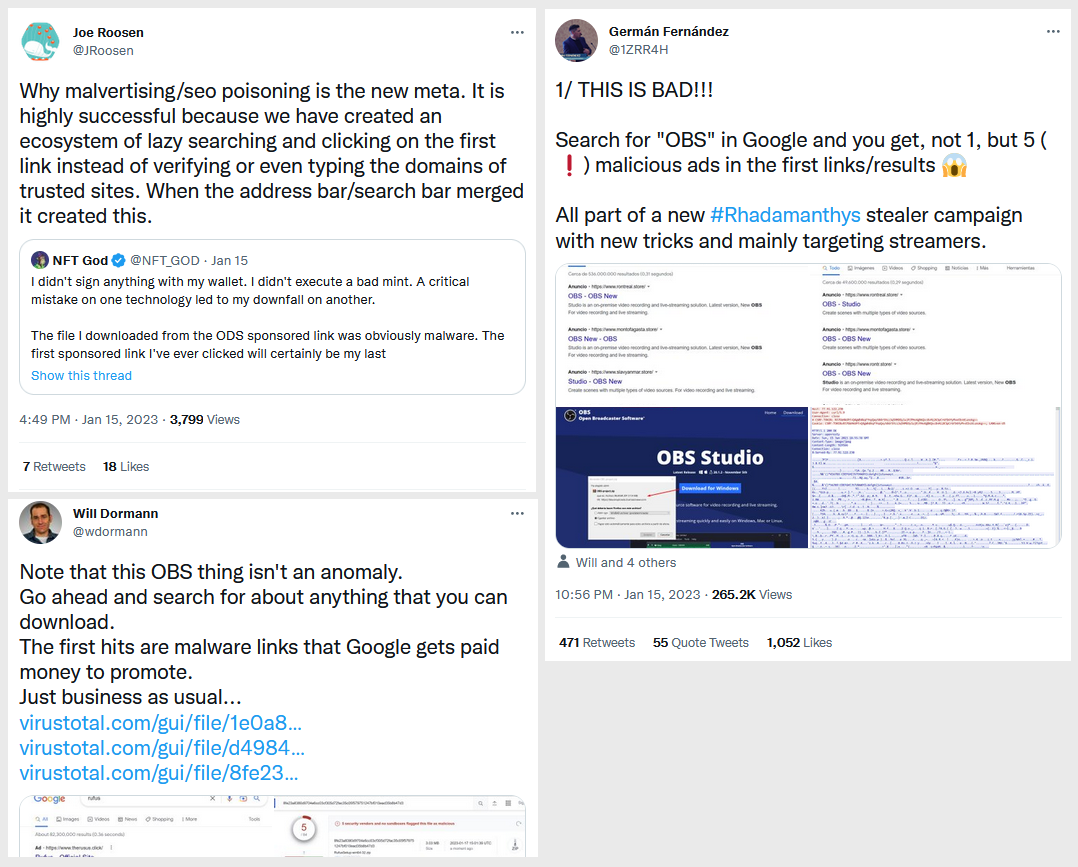 Throughout 2022 and early 2023, we've had Gootkit/Gootloader, IcedID, BatLoader, PrivateLoader, NullMixer, FakeCrack, RedLine Stealer, Rhadamanthys Stealer, Vidar Stealer, Yellow Cockatoo, VagusRAT, MasquerAds, and loads loads more testing or fully embracing SEO/SERP poisoning for their operations.