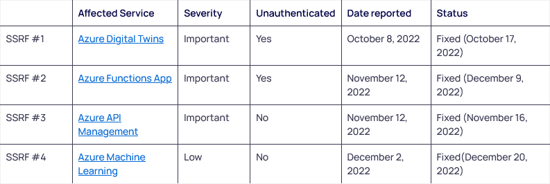 Azure SSRF vulnerabilities: Orca Security researchers have found Server Side Request Forgery (SSRF) vulnerabilities that impact four Azure cloud services, namely Azure API Management, Azure Functions, Azure Machine Learning, and Azure Digital Twins. Two of the vulnerabilities can be exploited without needing to authenticate, and the issues can be exploited to scan cloud networks for exposed systems. Microsoft fixed all issues.