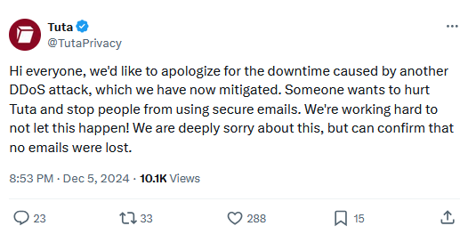 Tuta DDoS attacks: Secure email provider Tuta was the targeted of a days-long DDoS attack over the last week. [Additional coverage in TechRadar]