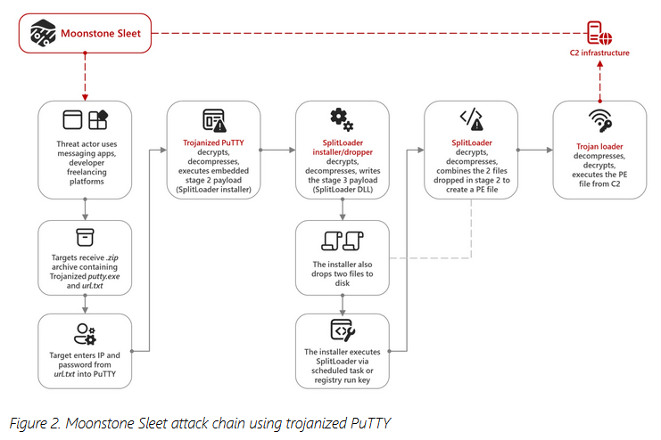 Moonstone Sleet: Microsoft's security team has discovered a new APT group named Moonstone Sleet (formerly Storm-1789) engaging in both cyber-espionage and revenue generation for the North Korean regime. Microsoft says it spotted the group when it splintered from the Diamond Sleet cluster last year and deployed its own infrastructure and attacks. Since then, the group has set up multiple fake companies to engage with potential targets in the blockchain and AI field and has used trojanized software and fake job lures to infect targets with malware. The group has also launched attacks with the FakePenny ransomware, and its members have sought employment at legitimate companies.