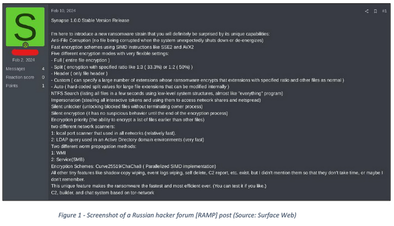Synapse ransomware: Security researchers have discovered a new Ransomware-as-a-Service advertised on underground hacking forums since February this year. The new ransomware is named Synapse, and it contains code that spares Iranian systems from encryption. According to security firm CyFirma, earlier this year, the Synapse group released a demo video to prove they built the fastest file-encrypting ransomware to date.
