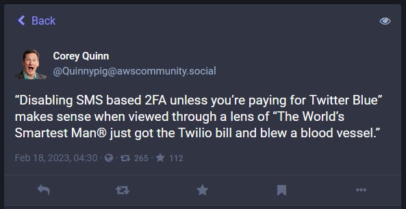 Twitter 2FA drama: Twitter will disable SMS-based two-factor authentication for anyone who has not paid for Twitter Blue on March 20, 2023. After that date, normal accounts will have their SMS 2FA option disabled. Normal accounts still have the option to use a security key or an authenticator app as their 2FA method. The risk to many accounts, especially those who may not be active in the coming month, comes from having their 2FA disabled without their knowledge. Twitter says it took this step because SMS 2FA was being abused by fraudsters who would establish accounts using application to person – or A2P – premium telephone numbers. When Twitter would text these numbers, Musk claims, the fraudsters would get paid. Estimated losses are in the tune of $60 million a year. Whether that's true or not, it seems certain that this is a cost-cutting measure and not about improving user security.