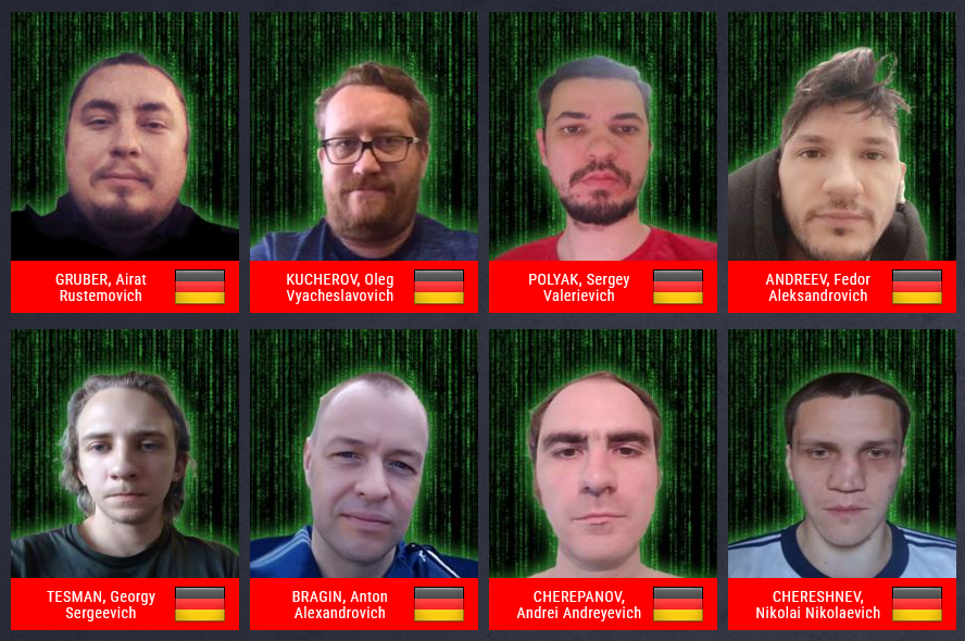 German police have also issued international arrest warrants for eight other suspects, pictured below, involved in the Smokeloader (first image, first row) and Trickbot botnets. The eight are now on the EU's most-wanted list.