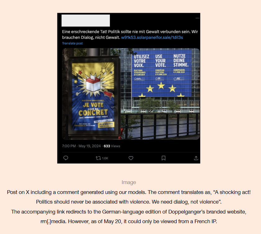 - A persistent Russian threat actor posting content about Ukraine across the internet, known as "Doppelganger."