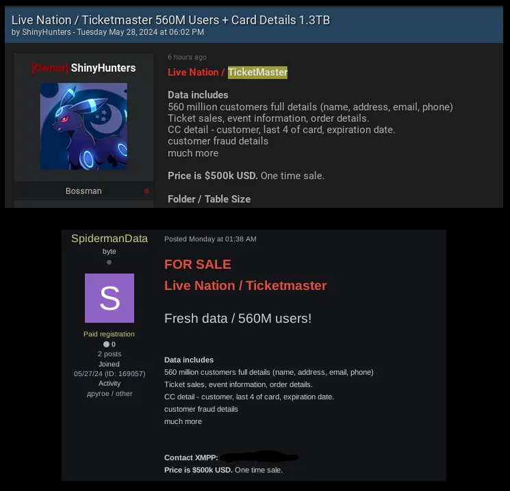 TicketMaster alleged leak: A threat actor claimed over the weekend to have breached TicketMaster and was selling some of the company's user data. There's apparently some drama related to the whole thing, from a "stolen hack" to "attention whoring" accusations. For now, the authenticity of the data has not been confirmed. Personally, I find this whole thing exhausting.