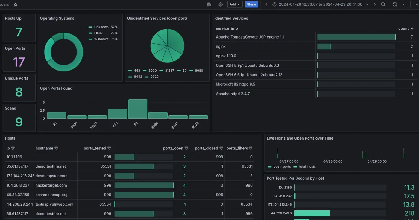 New tool—nmap-did-what: Security firm Hacker Target has released nmap-did-what, a tool to create Grafana dashboards to visualize nmap scan results.