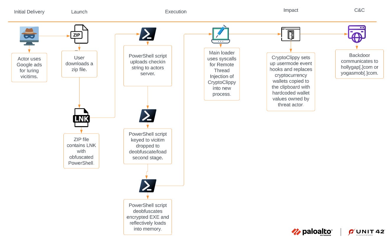 CryptoClippy: PAN's Unit42 division has discovered a malware campaign targeting Portuguese speakers. The payload in this operation is a new malware strain named CryptoClippy. Researchers say the malware operates as a clipboard hijacker that monitors the victim's clipboard for signs that a cryptocurrency wallet address is being copied, which it then replaces with one owned by attackers.