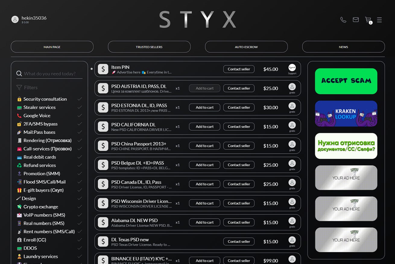 STYX Marketplace: Resecurity researchers have spotted a new dark web marketplace named STYX. Launched in January this year, the marketplace provides an assortment of illicit services ranging from data dumps to cash-out services and from DDoS attacks to stolen credentials. Despite launching only three months ago, STYX has already gained a large following, primarily because of its wide range of services available on its market.
