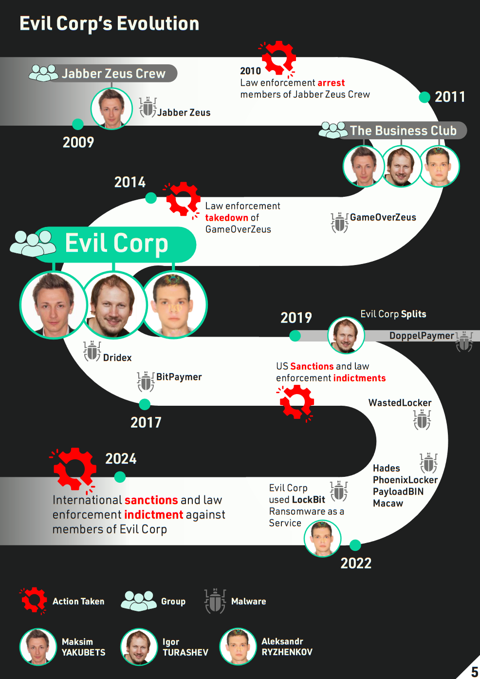 Announcements included new LockBit arrests and server seizures, and more sanctions on newly uncovered EvilCorp members—including a former FSB Spetsnaz officer who has been quietly protecting the group from local authorities.