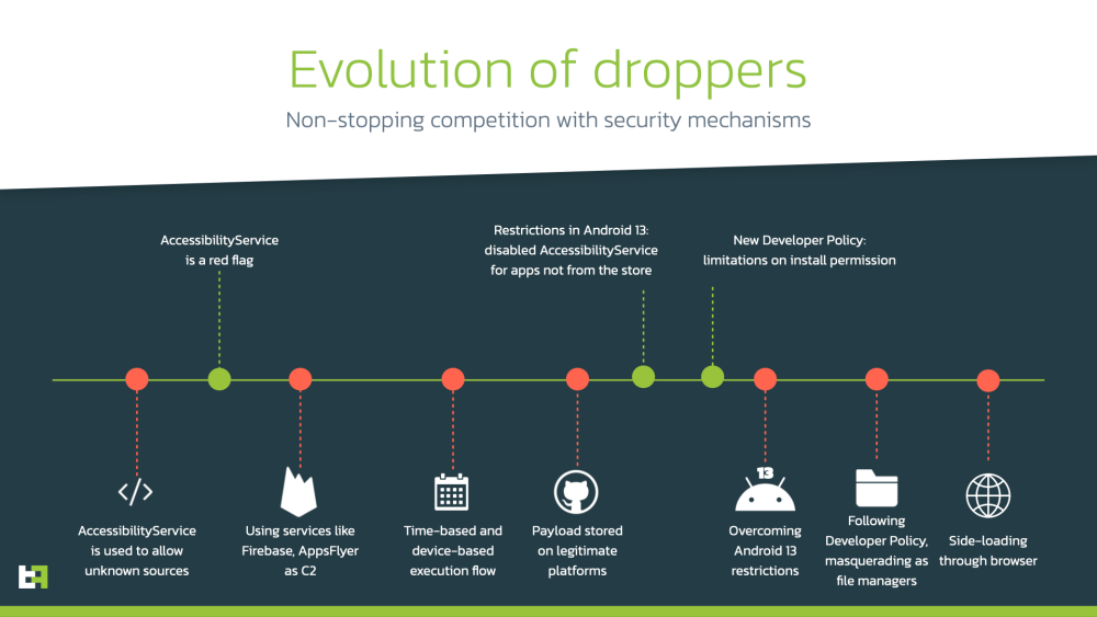 Droppers on the Play Store: ThreatFabric researchers have published a report on the recent tricks used by Android droppers to bypass the new Android 13 security features and deploy their malware on the Play Store. The company is reporting on campaigns that infected at least 130,000 users with bankers like Sharkbot and Vultur.