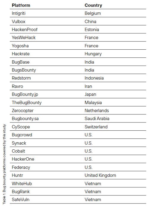 PT trends report: Russian security firm Positive Technologies has published its yearly threats report for 2022 and looks at possible trends for 2023. The 207-page report is here. One of the most interesting things we found in the report was this list of today's major bug bounty platforms.
