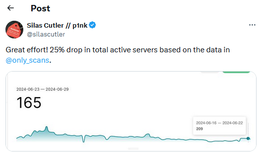 Rejetto HFS exploitation: Security firm AhnLab has discovered attacks against Rejetto web file servers. The attacks are exploiting a vulnerability (CVE-2024-23692) patched at the end of May. The bug allows attackers to inject malicious HTML templates into Rejetto and run malicious code to hijack the server. AhnLab says the bug is being exploited to drop crypto-miners, backdoors, and infostealers. According to Arseniy Sharoglazov, the researcher who initially found the bug, there are more than 2.3 million Rejetto servers connected to the internet, most running on Windows.
