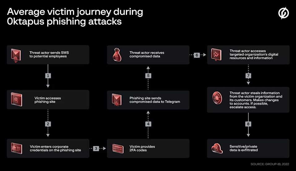 0ktapus: Group-IB said it identified a spear-phishing campaign targeting the Okta accounts of corporate entities. Named 0ktapus, this campaign has been going on since March this year and based on data Group-IB obtained from the attacker's infrastructure, 0ktapus operators collected almost 10,000 victim credentials for more than 130 organizations.