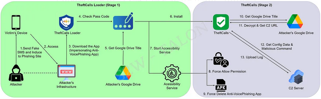TheftCalls: South Korean security firm S2W has published an analysis of TheftCalls, an Android malware strain operated by the TheftCrow gang. The group calls victims by phone, posing as official institutions, and tricks them into installing the malware. The malware itself is a basic loader that is used to deploy other malicious tools.