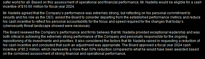 Nadella asks for pay cut over cybersecurity failures: Microsoft CEO Satya Nadella has asked the company's board of directors to cut his failure in managing the tech giant's cybersecurity issues. The failures included getting hacked by both Russian and Chinese state-sponsored hackers. Nadella asked the board to withhold $10.6 million in cash compensation. The board approved only a $5.2 million cash payout over the company's "extremely strong performance" last year. In total, the board approved a $79 million salary for Nadella, 63% over his 2023 salary. [Additional coverage in CybersecurityDive]