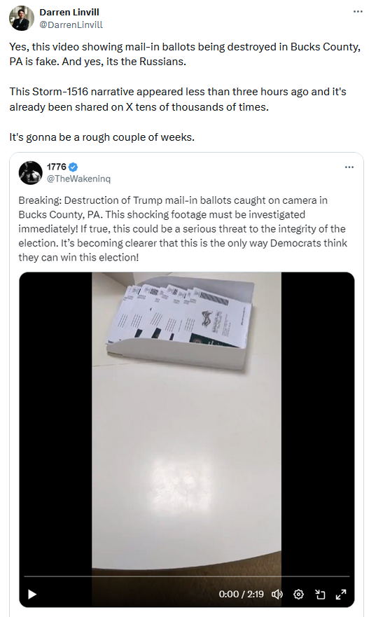Michigan misinformation campaigns: The Open Measures research team has published a report on election misinformation campaigns targeting Michigan, a critical US swing state in the upcoming presidential election.