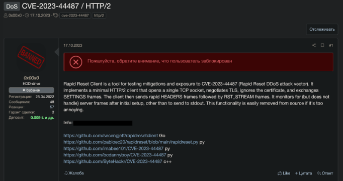 HTTP/2 Rapid Reset PoC: Russian DDoS mitigation firm Qrator Labs says threat actors are sharing proof-of-concept (PoC) code for the HTTP/2 Rapid Reset DDoS attack.