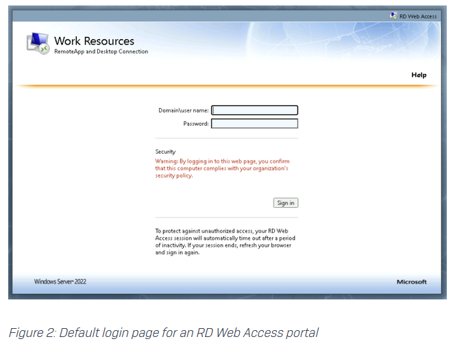 RD Web Access abuse: Security firm Sophos says it responded to multiple incidents since the start of the year where threat actors gained access to an organization via their RD Web Access portals. RD Web Access is one of the four components of the Microsoft Remote Desktop service. It allows users to authenticate via a web portal before connecting to their remote host. Sophos says the intrusions were linked to portals that didn't use MFA.
