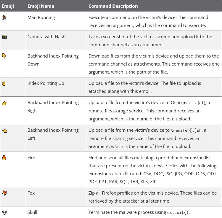 UTA0137 and DISGOMOJI: Security firm Volexity has discovered a suspected Pakistani APT group engaging in cyber-espionage against Indian government entities. The group's main toolkit is DISGOMOJI, a malware strain designed to target Linux servers. The malware uses a Discord channel as its command-and-control server and emojis as commands to control infected systems. Volexity tracks the new group as UTA0137.