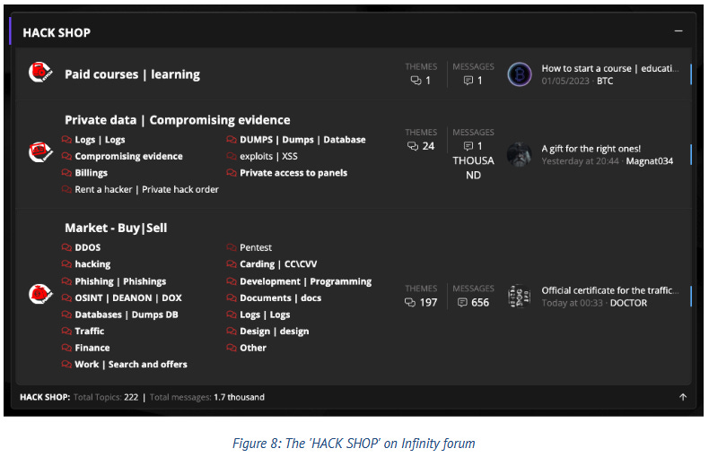 Infinity Forum: Security researchers have discovered a new cybercrime portal for Russian-speaking users that goes under the name of Infinity Forum. The site is currently used for advertising various cybercrime services, such as hacking tools, hacking services, and DDoS-for-hire botnets. Security firm Radware says the threat actor behind the forum is a group named the Infinity Team, which they described as a collaboration between Deanon Club and Killnet, two pro-Kremlin hacktivist groups that have historically launched DDoS attacks against western targets. More in Radware's security advisory [PDF].