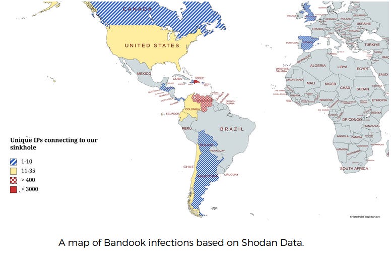 Dark Caracal: Dark Caracal, a cyber mercenary hacker-for-hire group, is still active and targeting individuals in Latin America. Security researchers with the Electronic Frontier Foundation say they discovered the group's Bandook spyware deployed on more than 700 computers in Central and South America. Approximately 75% of the infected computers are located in the Dominican Republic and 20% in Venezuela. The campaign began in March 2022 and is still ongoing. EFF said the Bandook malware was also updated and now supports 148 commands to interact with infected hosts, compared to the 132 commands older versions supported.