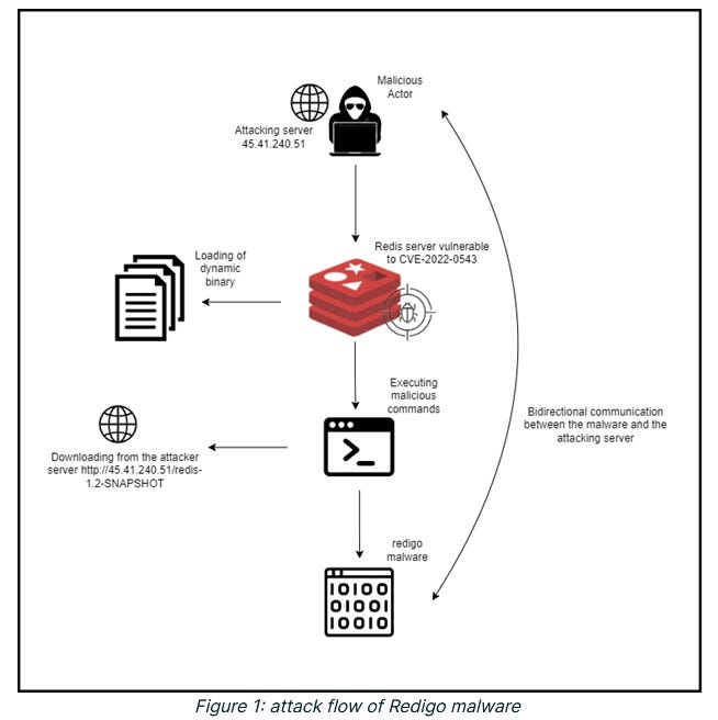 Redigo: AquaSec researchers have spotted a new malware strain named Redigo that is currently being used to attack and infect Redis database servers. Redigo is written in the Go programming language and leverages an exploit for the CVE-2022-0543 vulnerability to compromise unpatched Linux servers. AquaSec said Redigo-infected servers are being added to a botnet but that it's unclear what these systems will be used for. Typical scenarios usually include cryptomining, DDoS attacks, or proxy networks.