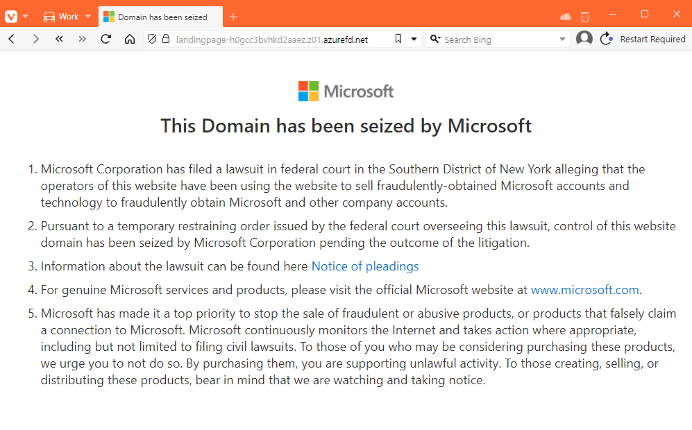 Microsoft seizes Storm-1152 domains: Microsoft has seized a new domain operated by a Vietnamese cybercrime group named Storm-1152. The domain hosted a service designed to bypass CAPTCHA services. The seizure is Microsoft's second legal action against the group. Redmond lawyers previously seized domains and servers from the group in December of last year. Microsoft says Storm-1152 created and sold access to more than 750 million Microsoft accounts. [Additional coverage in CyberScoop]
