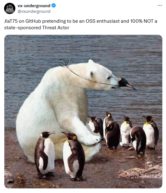 Who is the attacker: The main culprit behind the backdoor has been identified as a developer going by the pseudonym of Jia Tan or JiaT75. Software engineer Evan Boehs has studied the attacker's past commits and published a timeline of Jia Tan's actions, including commits to other open-source projects, such as libarchive (used in Windows 👀).