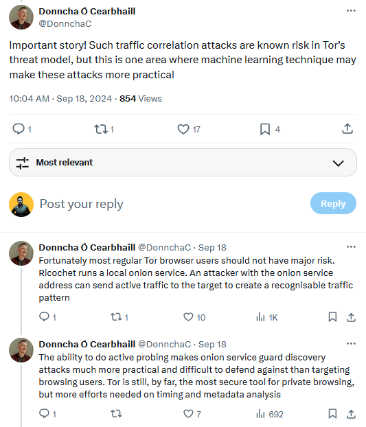 The Project says that Onion routing software—at the base of the Tor network—comes with protections against timing attacks and that the users of its Tor Browser need not panic.