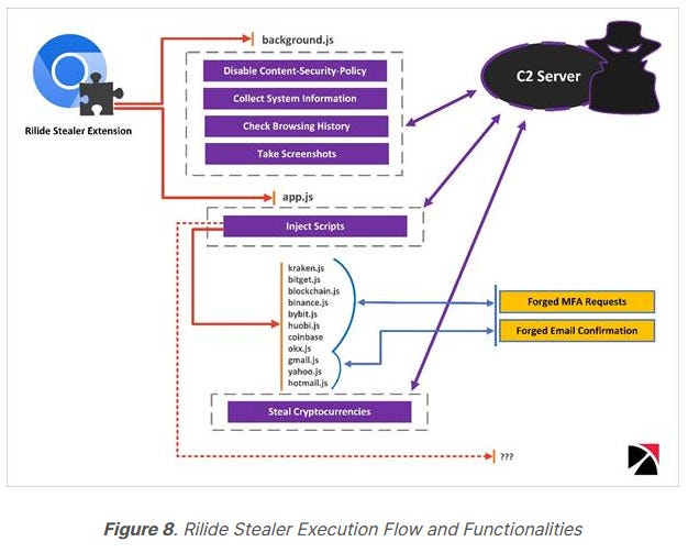 Rilide: Trustwave researchers have discovered a new strain of malware named Rilide, hidden in a browser extension that targets Chromium-based browsers such as Google Chrome, Microsoft Edge, Brave, and Opera. Trustwave says the extension is installed on users' computers via other malware campaigns. Its main purpose appears to be to steal money from cryptocurrency exchange accounts. In the incidents it analyzed, Trustwave says Rilide was disguised as a legitimate Google Drive extension.