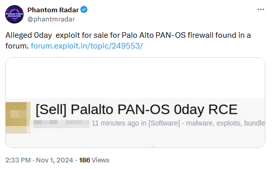 The Palo Alto zero-day is believed to be related to an alleged exploit sold on the Exploit hacking forum earlier this month.