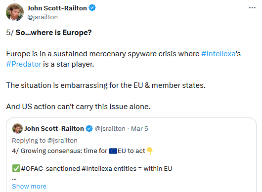 Since March, the US State Department also imposed visa bans on 13 individuals involved in spyware development. While visa bans are not public, Intellexa is very likely to have had employees or executives on that list as well.